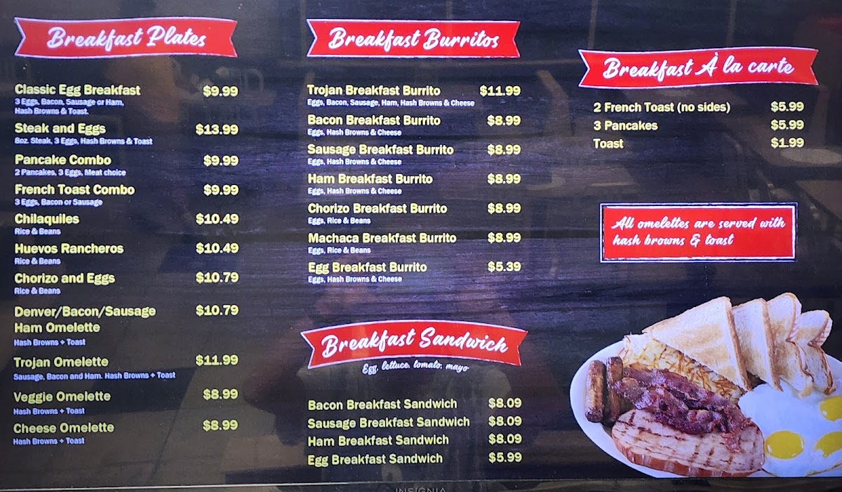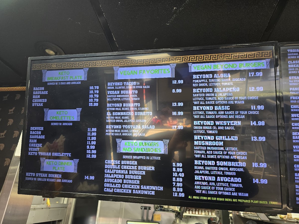 Indulge in their Kids Pancake Combo or dive into the hearty Trojan Fries, a sensational dish loaded with chili, cheese, pastrami, carne asada, sour cream, guacamole, and pico de gallo—perfect for those who crave an explosion of flavors in each bite. Reviewers rave about the warm burritos, asserting that Troy's has the best in town. The Jr. Burger Combo and Grilled Chicken Sandwich also see high praise, delivering juicy bites paired with fresh ingredients. Customers have relished their experiences, with the grilled chicken salad being a fresh and delicious choice, ensuring there's something for everyone.
